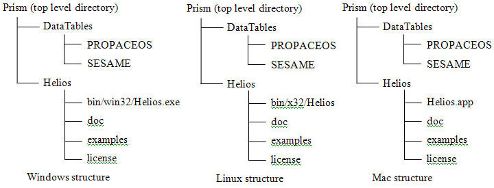 The library can be located in any folder (i.e., directory) the user has access to. During installation of HELIOS, files are placed in a directory structure similar to that shown below. In a folder parallel to the HELIOS folder, a DataTables folder is supplied to hold files for EOS and opacity data for SESAME and PROPACEOS.