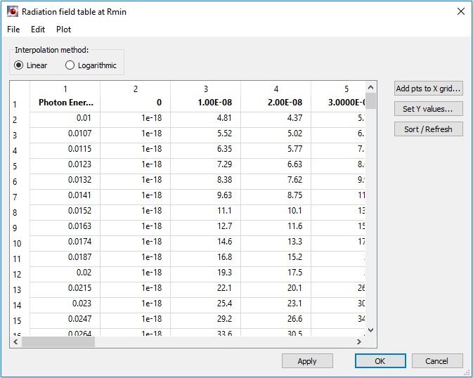 In HELIOS, multi-column (more than two-column) tables have mostly the same functionality as two-column tables. However, in a multi-column table, the first cell (row 1, column 1) is reserved as a header, and its contents will be ignored. Row 1 and Column 1 are considered independent variables, and the remaining cells are for the dependent variable.