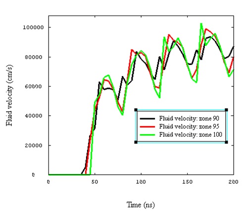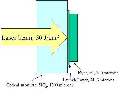 In this calculation, an 80 ns long laser beam (fluence: 50 J/cm2, wavelength: 1.054 mm) is used to accelerate an Al flyer.