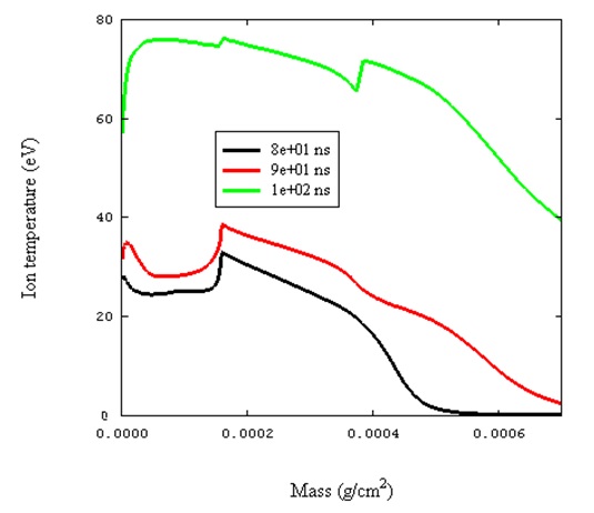Example Simulation Results: Plasma temperature distribution at three different time steps.