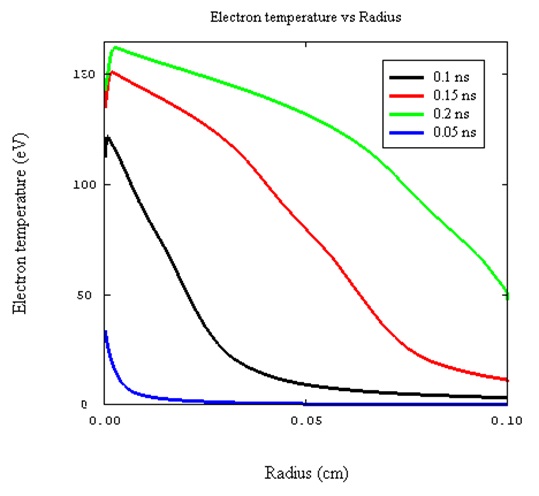 Example Simulation Results: Electron temperature distribution in the foam at different times.