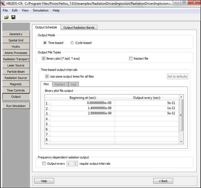 Setup Output: enter table values as shown below, save the file, and then press Run Simulation.