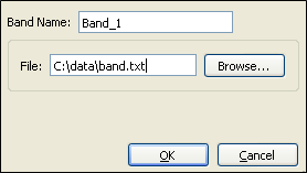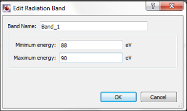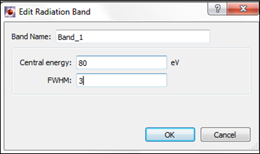 Bands are added by selecting the model to use - Square, Gaussian or a Filter response file - and clicking on the Add button. A dialog will be displayed where the name of the band and the data to define the band can be entered. The required data is: