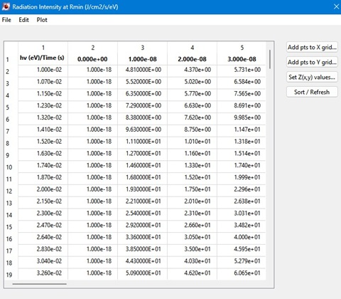 - Each remaining cell is then the radiation flux (in J/cm2/s/eV) value for that photon energy and time.