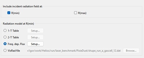 - Frequency-dependent Flux table: A multi-column table of photon-energy- and time-dependent fluxes. Photon energies from the table are automatically remapped to radiation group structure of the simulation.