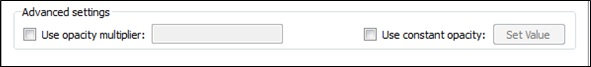 To set an opacity multiplier: check the Use opacity multiplier box and enter a value in the edit box.