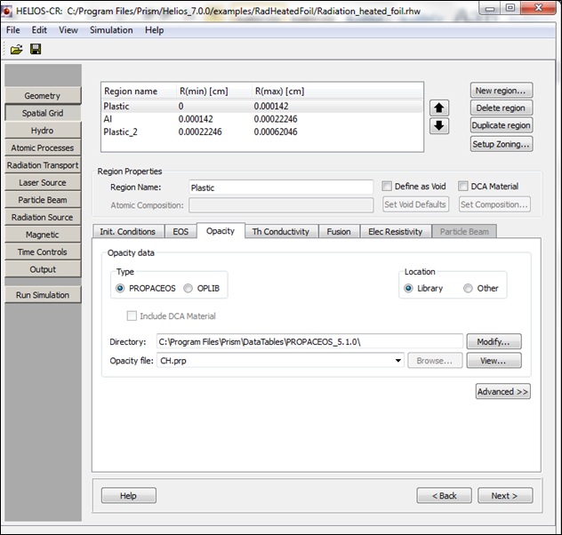 It is generally convenient to locate all PROPACEOS files is a single folder, or data library. The location of the library is shown as the Directory in the Opacity tab, which can be changed using the Modify button. (See also, setting up a data library.)