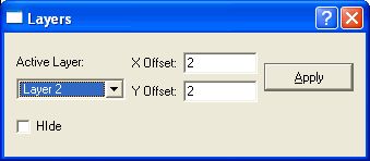 The active layer will be the layer selected in the combo box. Layers can be hidden by checking the Hide box. The layer offset is the offset from the graph origin as a percentage of the axis length.
