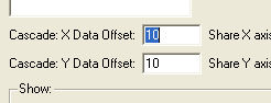 The X and Y data offsets specify the offset of a plot from the previous plot as a percentage of the maximum data range. The maximum data range is the maximum data value from all the plots minus the minimum data value from all the plots.