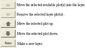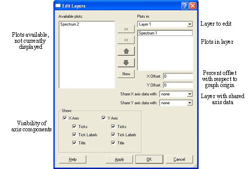 All visible plots are contained in a layer. To choose the plots to display in a layer, create new layers and change the display of the layer select the menu item Layers | Properties from the menu bar, from the menus shown by right clicking on the graph or by double clicking on the layer.