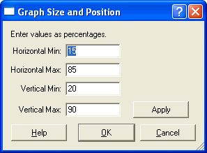 The size of the graph and the position in the window can be edited by selecting the menu item Graph | Size/Position either from the menu bar or from the menus shown following a right mouse click on the graph.