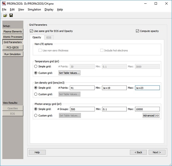 If the Compute Opacity box is unchecked, only the EOS data will be calculated.