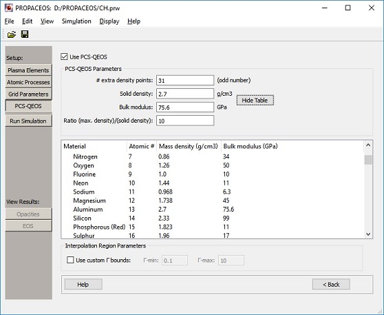 To include the effects of QEOS, check the Use PCS-QEOS box.