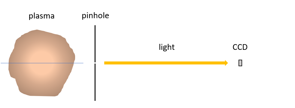In such a case, we probably only need a single LOS (though further resolution can be done with more pixels, if the pinhole is large). We create a single "pixel" detector in SPECT3D, with the pixel size defining the solid angle of the plasma to which the experiment is sensitive (which would be calculated using the pinhole size and position). Again, we place the SPECT3D detector at the position of the physical detector, and receive a spectrum in erg/cmˆ2/s/eV. Integrating the spectrum over the frequency range gives F in Eq. 1. We then by the area (A) of the physical detector which is illuminated. We may encounter one of two scenarios: