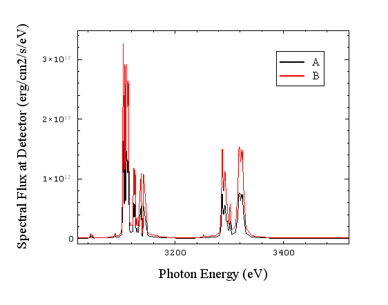 Note: if an increase in source solid angle (SPECT3D detector size) also corresponds to an increased experimental collection area (A in Eq. 1), the absolute power collected will increase by both factors. In the scenario where our light is collimated, and thus the collection area A is the same as the SPECT3D pixel area, if we double the source solid angle (defined by the SPECT3D detector size), we double the flux (e.g. spectrum B above), while also doubling the collection area A, resulting in 4x the power collected. Intuitively, this is because the doubling of the source solid angle corresponds to a doubled flux (which is per cmˆ2) over the entire collection region, which is also doubled.