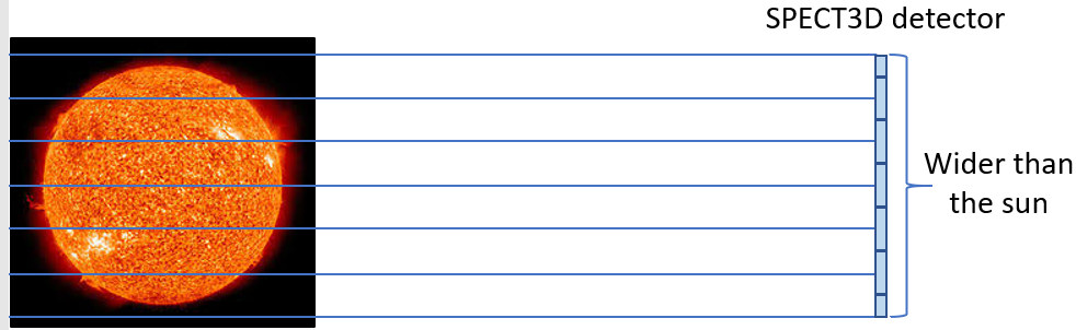Since the whole sun is visible, we set up a SPECT3D detector which covers the whole solid angle of the sun (but is still at the position of your physical detector) :