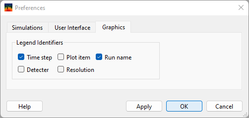 The third tab is the Graphics tab and controls the default plot legend titles of each new plot generated. The settings of this tab are saved and will be used for each new line plot in each new instance of SpectraPLOT until changed.