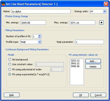 The steps for defining a band are as follows (using the Ar Ly-alpha line as