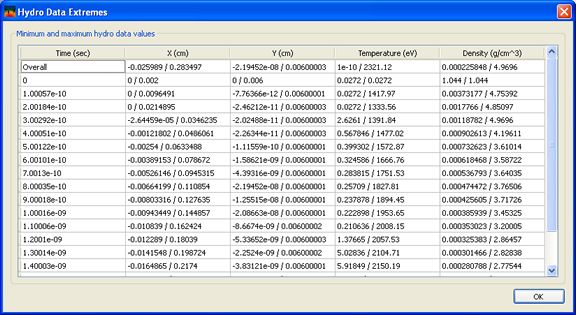 Minimum and maximum values for each dimension of the grid and for temperature and density can be viewed by clicking on the View Data Extremes button: