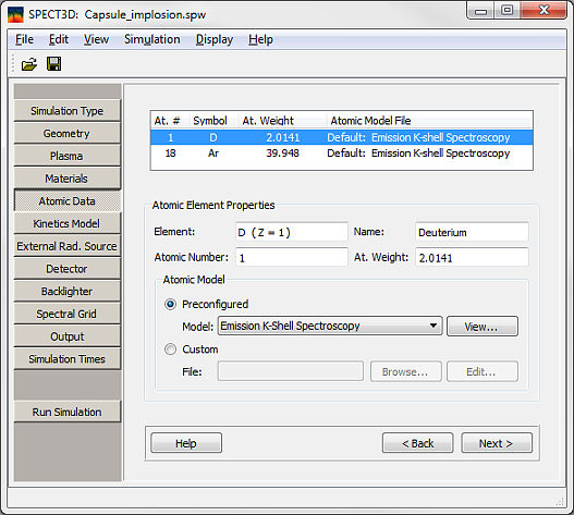 Click on the Atomic Data button or on the Next button on the Materials page.