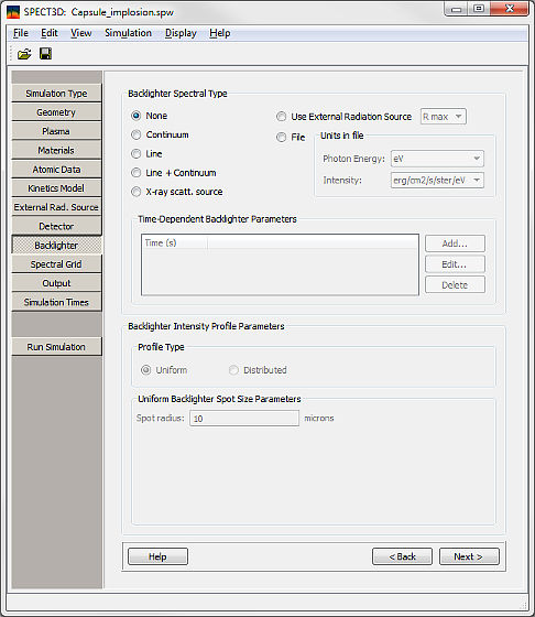 Click on the Backlighter button or on the Next button on the Detector page.