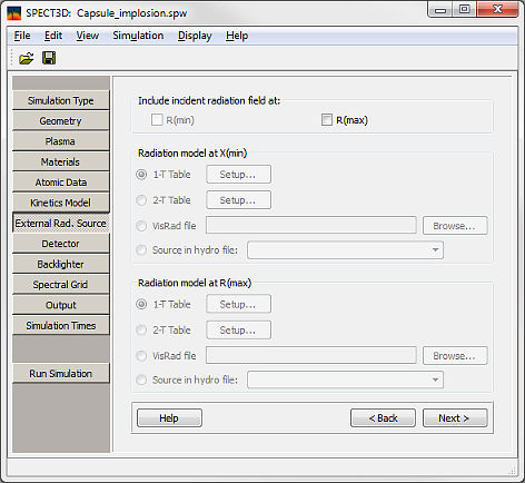 Click on the External Rad. Source button or on the Next button on the Kinetics Model page.
