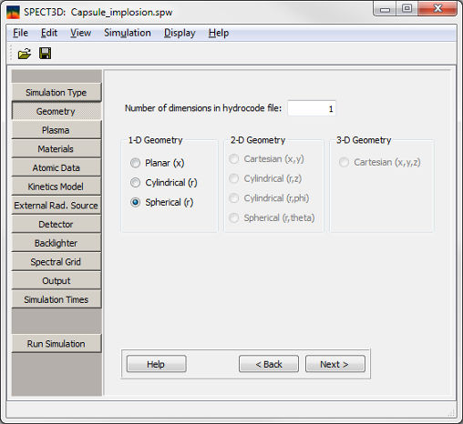 Click on the Geometry button or on the Next button on the Simulation Type page.
