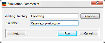 Enter a name for the run (in this example, Capsule_implosion_run ) and choose a Working Directory where the results will be stored.