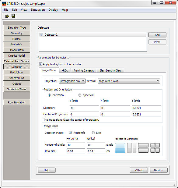 - Detector shape: Leave the default coordinate setting of Rectangle.