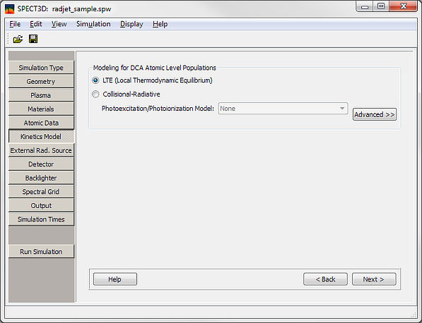 Click on the Kinetics Model button or on the Next button on the Atomic Data page.