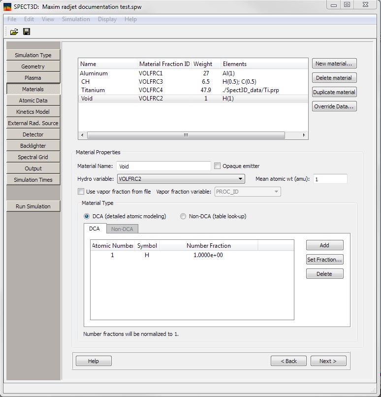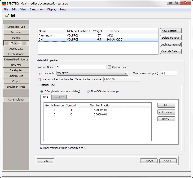 Click on the Materials button or on the Next button on the Plasma page.