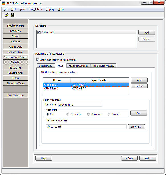 Now set the Filter Type for XRD_Filter_2 by selecting the File radio button; browse to the Examples -> Radjet folder and select XRD_02.frf.