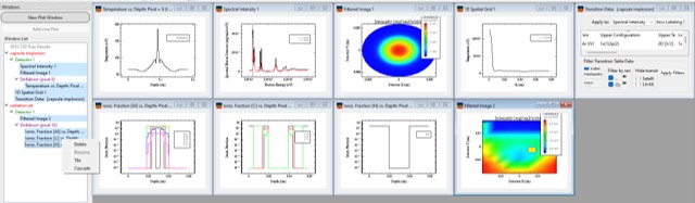 Ionization plot windows are used to show various quantities associated with ionization results from a SPECT3D calculation, including mean charge, ionization fractions, and atomic level populations. The temperature, electron density and material mass densities can also be displayed. The simulation times available are those used in the SPECT3D calculation (in SPECT3D calculations with time-dependent kinetics, the simulation time grid is generally different than the time grid of the hydro data file).