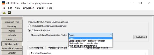 Transition modifiers can also be imported/exported to data files so that they can be used in other SPECT3D or PrismSPECT applications. To do this, in the Set Transition Modifiers dialog, select the File | Import (Export) Transition Modifiers menu items.