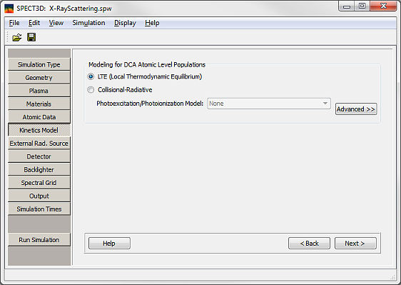 Click on the Kinetics Model button or on the Next button on the Atomic Data page.
