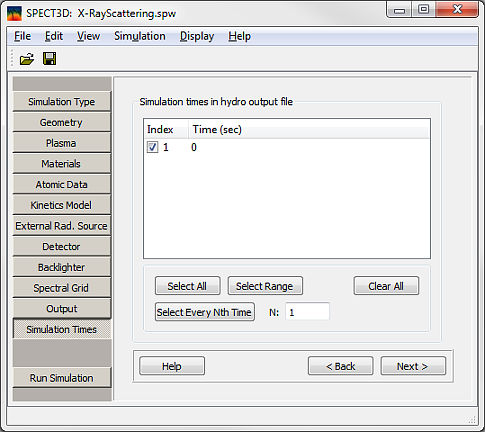 Click on the Simulation Times button or on the Next button on the Spectral Grid page.