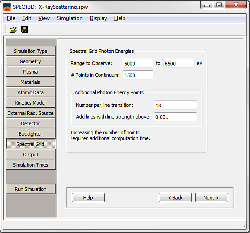Click on the Spectral Grid button or on the Next button on the Backlighter page.