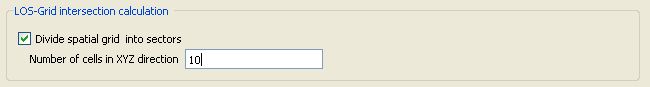 LOS-Grid intersection calculation: For either 2-D R-Z or 3-D Cartesian grids, if the intersection model set on the Simulation Type widget is Evaluate for Individual Elements, the grid can be split into sectors (or groups) of volume elements to speed the calculation of ray intersections with the plasma grid. To do this, click on the Divide Spatial Grid Into Sectors check box and enter the number of cells that will be used along each dimension of the sector. For complex grids with many volume elements, using a modest number of sector cells (e.g., 5 - 10) is recommended.