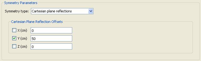 2 Cartesian plane reflections: The plasma can be reflected across the xy-, yz- and xz- planes. An offset from each requested plane can be entered: