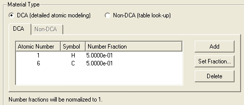 DCA materials consist of one or more atomic elements. For non-DCA materials, pre-computed tabular data are based on plasmas containing one or more atomic elements, but the elements in non-DCA materials are not treated explicitly in SPECT3D simulations.